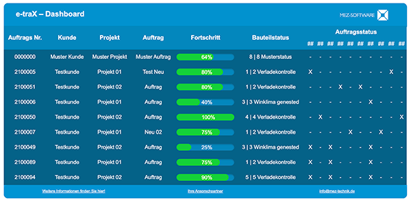 Auf einem übersichtlichen Dashboard wird Ihnen der aktuelle Status und Fortschritt eines jeden Auftrags angezeigt. So verlieren Sie niemals den Überblick.