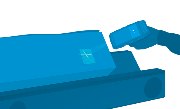 Das Bauteil wird an der Falzmaschine gescannt.